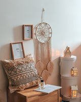A beautiful blend of elegance and bohemian charm, this dream catcher is designed to bring warmth, texture, and visual interest to your walls. Perfect for creating a cozy yet stylish atmosphere, it adds a touch of artistry and serenity to any space.